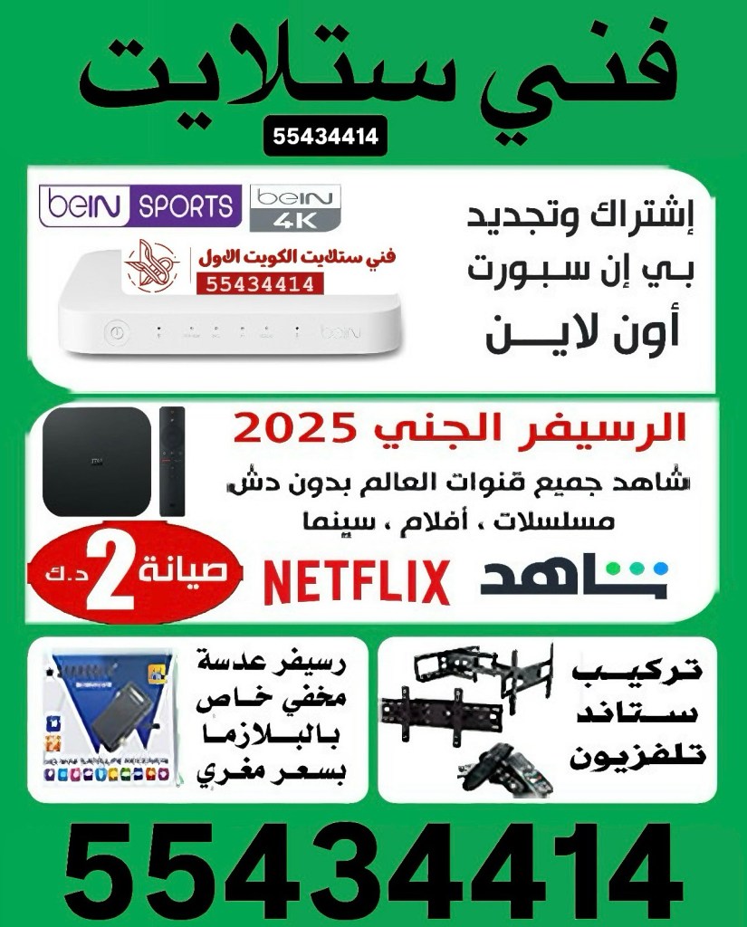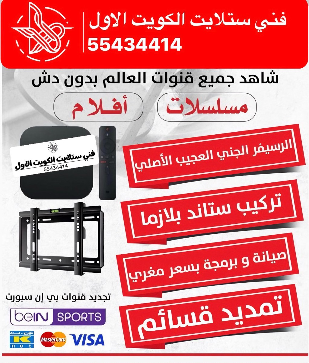 خدمات فني ستلايت وتجديد اشتراكات بالكويت 55434414
